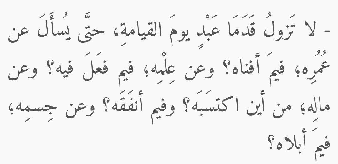 "لاتزُولُ قدمَا عبدٍ يومَ القيامة"